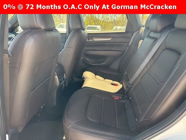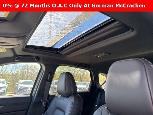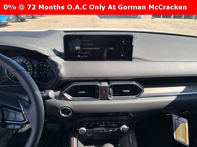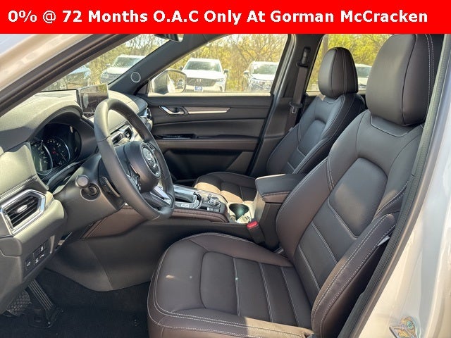 Rhodium White Metallic 2025 Mazda CX-5 2.5 Turbo Signature AWD 6-Speed Automatic Roof Rails & Cross Bars Package, 10 Speakers, 4-Wheel Disc Brakes, ABS brakes, Air Conditioning, Alloy wheels, AM/FM radio: SiriusXM, AppLink/Apple CarPlay and Android Auto, Auto High-beam Headlights, Auto-dimming Rear-View mirror, Automatic temperature control, Brake assist, Bumpers: body-color, Cargo Mat, Delay-off headlights, Driver door bin, Driver vanity mirror, Dual front impact airbags, Dual front side impact airbags, E911 Automatic Emergency Notification, Electronic Stability Control, Emergency communication system: MAZDA CONNECT, Four wheel independent suspension, Front anti-roll bar, Front Bucket Seats, Front Center Armrest w/Storage, Front dual zone A/C, Front reading lights, Fully automatic headlights, Garage door transmitter: HomeLink, Genuine wood dashboard insert, Genuine wood door panel insert, Heads-Up Display, Heated door mirrors, Heated front seats, Heated rear seats, Heated steering wheel, Heated/Ventilated Front Bucket Seats, Illuminated entry, Infotainment System Voice Command, Leather Shift Knob, Leather steering wheel, Low tire pressure warning, Mazda Navigation System, Memory seat, Multifunction Commander Control, Nappa Leather Seat Trim, Navigation system: MAZDA CONNECT, Occupant sensing airbag, Outside temperature display, Overhead airbag, Overhead console, Pandora, Panic alarm, Passenger door bin, Passenger vanity mirror, Power door mirrors, Power driver seat, Power Liftgate, Power moonroof, Power passenger seat, Power steering, Power windows, Radio Broadcast Data System Program Information, Radio data system, Radio: AM/FM/HD Audio System, Rain sensing wipers, Rear anti-roll bar, Rear Bumper Guard, Rear reading lights, Rear seat center armrest, Rear window defroster, Rear window wiper, Remote keyless entry, Rhodium White Metallic Paint, SMS Text Msg Audio Delivery & Reply, Speed control, Speed-sensing steering, Split folding rear seat, Spoiler, Steering wheel mounted audio controls, Tachometer, Telescoping steering wheel, Tilt steering wheel, Traction control, Trip computer, Turn signal indicator mirrors, Variably intermittent wipers, Ventilated front seats, Wheel Locks, and Wheels: 19 x 7J Aluminum Alloy. 2.5L I4