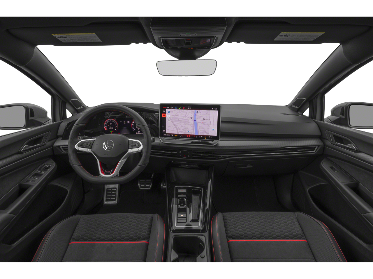 Opal White Pearl 2025 Volkswagen Golf GTI 2.0T SE FWD 7-Speed DSG Automatic with Tiptronic 4-Wheel Disc Brakes, 9 Speakers, ABS brakes, Air Conditioning, Alloy wheels, AM/FM radio: SiriusXM with 360L, ArtVelours Seating Surfaces, Auto High-beam Headlights, Auto-dimming Rear-View mirror, Automatic temperature control, Brake assist, Bumpers: body-color, Compass, Delay-off headlights, Driver door bin, Driver vanity mirror, Dual front impact airbags, Dual front side impact airbags, Electronic Stability Control, Emergency communication system: VW Car-Net Safe & Secure 5-year, Exterior Parking Camera Rear, Forward collision: FCW w/Autonomous Emergency Braking mitigation, Four wheel independent suspension, Front anti-roll bar, Front Bucket Seats, Front Center Armrest, Front fog lights, Front reading lights, Fully automatic headlights, harman/kardon® Speakers, Heated door mirrors, Heated front seats, Heated Front Top Sport Seats, Heated steering wheel, Illuminated entry, Leather steering wheel, Low tire pressure warning, Navigation System, Occupant sensing airbag, Outside temperature display, Overhead airbag, Overhead console, Panic alarm, Passenger door bin, Passenger vanity mirror, Power door mirrors, Power driver seat, Power moonroof: Panoramic, Power passenger seat, Power steering, Power windows, Radio data system, Radio: MIB3 Discover Pro AM/FM/HD With12.9 Touchscreen Navigation, Rain sensing wipers, Rear anti-roll bar, Rear reading lights, Rear seat center armrest, Rear window defroster, Rear window wiper, Remote keyless entry, Security system, Speed control, Speed-sensing steering, Speed-Sensitive Wipers, Split folding rear seat, Spoiler, Sport steering wheel, Steering wheel mounted audio controls, Tachometer, Telescoping steering wheel, Tilt steering wheel, Traction control, Trip computer, Turn signal indicator mirrors, Variably intermittent wipers, and Wheels: 18 2-Tone Diamond-Turned Alloy. 2.0L TSI DOHC