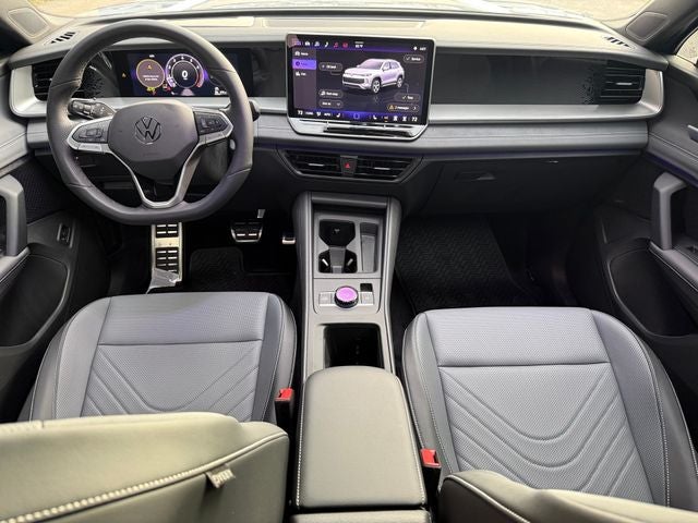 Monterey Blue with Deep Black Roof 2026 Volkswagen Tiguan 2.0T SE R-Line Black FWD 8-Speed Automatic 4-Wheel Disc Brakes, 4-Wheel Independent Suspension, 7 Speakers, ABS brakes, Air Conditioning, Alloy wheels, AM/FM radio: SiriusXM with 360L, Auto High-beam Headlights, Auto-dimming Rear-View mirror, Automatic temperature control, Brake assist, Bumpers: body-color, Compass, Delay-off headlights, Driver door bin, Driver vanity mirror, Dual front impact airbags, Dual front side impact airbags, Electronic Stability Control, Emergency communication system, Exterior Parking Camera Rear, Four wheel independent suspension, Front anti-roll bar, Front Bucket Seats, Front Center Armrest, Front dual zone A/C, Front reading lights, Fully automatic headlights, Heads-Up Display, Heated door mirrors, Heated Front Seats, Heated front seats, Illuminated entry, Knee airbag, Leather Shift Knob, Leather steering wheel, Low tire pressure warning, Occupant sensing airbag, Outside temperature display, Overhead airbag, Overhead console, Panic alarm, Passenger door bin, Passenger vanity mirror, Perforated V-Tex Leatherette Seating Surfaces, Power door mirrors, Power driver seat, Power Liftgate, Power moonroof: Panoramic, Power steering, Power windows, Radio data system, Rain sensing wipers, Rear anti-roll bar, Rear reading lights, Rear seat center armrest, Rear side impact airbag, Rear window defroster, Rear window wiper, Remote keyless entry, Security system, Speed control, Speed-sensing steering, Split folding rear seat, Spoiler, Sport steering wheel, Steering wheel mounted audio controls, Tachometer, Telescoping steering wheel, Tilt steering wheel, Traction control, Trip computer, Turn signal indicator mirrors, Variably intermittent wipers, and Wheels: 20 Black Painted Alloy. 2.0L TSI DOHC