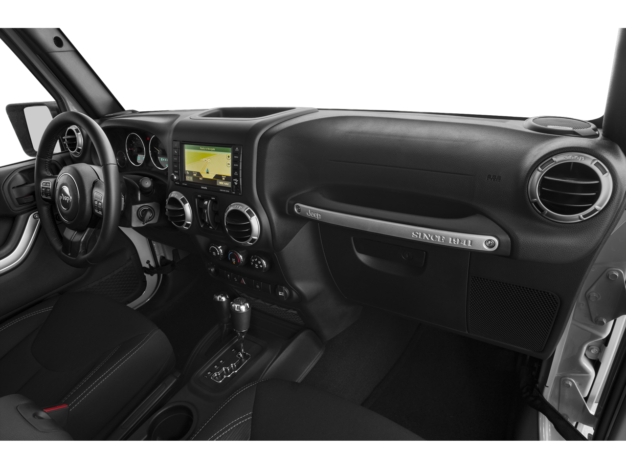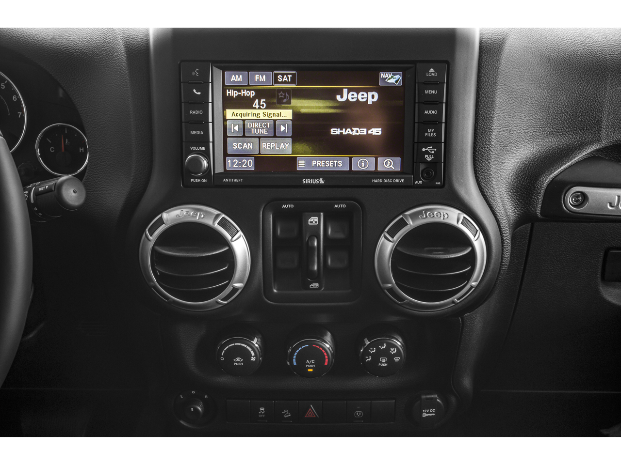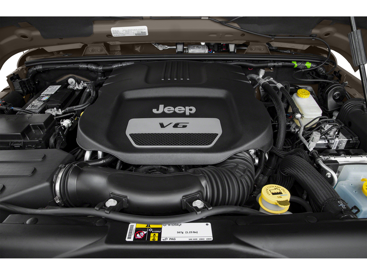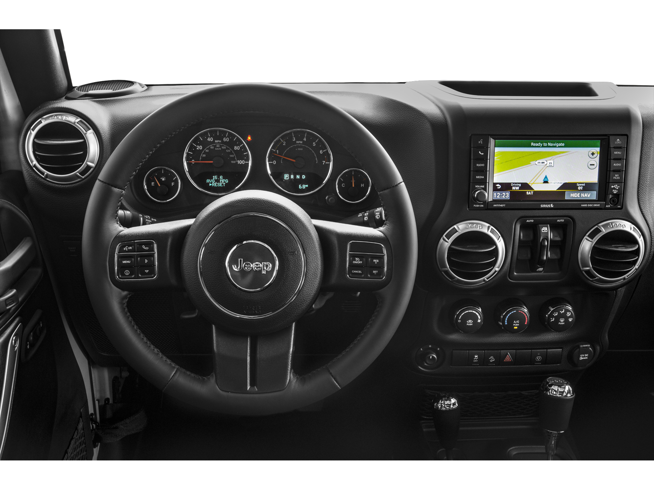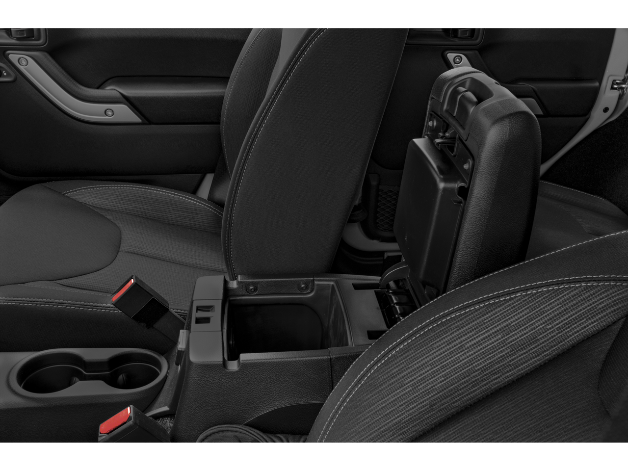 Connectivity Group (Tire Pressure Monitoring Display and Vehicle Information Center), Quick Order Package 24R, 17 x 7.5 Polished Mineral Gray Wheels, 3.73 Rear Axle Ratio, 4-Wheel Disc Brakes, 8 Speakers, ABS brakes, Air Conditioning, Alloy wheels, AM/FM radio, Audio Jack Input for Mobile Devices, Auto-dimming Rear-View mirror, Black 3-Piece Hard Top, Brake assist, CD player, Cloth Bucket Seats, Compass, Delete Sunrider Soft Top, Driver door bin, Driver vanity mirror, Dual front impact airbags, Electronic Stability Control, Freedom Panel Storage Bag, Front anti-roll bar, Front Bucket Seats, Front Center Armrest w/Storage, Front fog lights, Front reading lights, Fully automatic headlights, Heated door mirrors, Illuminated entry, Integrated roll-over protection, Leather steering wheel, Leather Wrapped Steering Wheel, Low tire pressure warning, Manufacturer's Statement of Origin, MOPAR Slush Mats, Occupant sensing airbag, Outside temperature display, Panic alarm, Passenger door bin, Passenger vanity mirror, Performance Suspension, Power door mirrors, Power steering, Power windows, Radio data system, Radio: Uconnect 130 AM/FM/CD/MP3, Rear anti-roll bar, Rear Window Defroster, Rear Window Wiper/Washer, Remote keyless entry, Remote Start System, Security system, Speed control, Split folding rear seat, Steering wheel mounted audio controls, Sunrider Soft Top, Tachometer, Tilt steering wheel, Traction control, Trip computer, and Variably intermittent wipers.