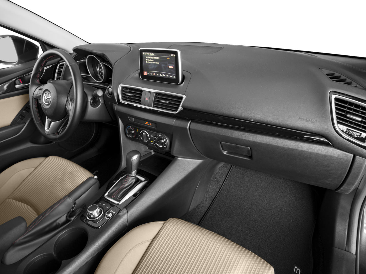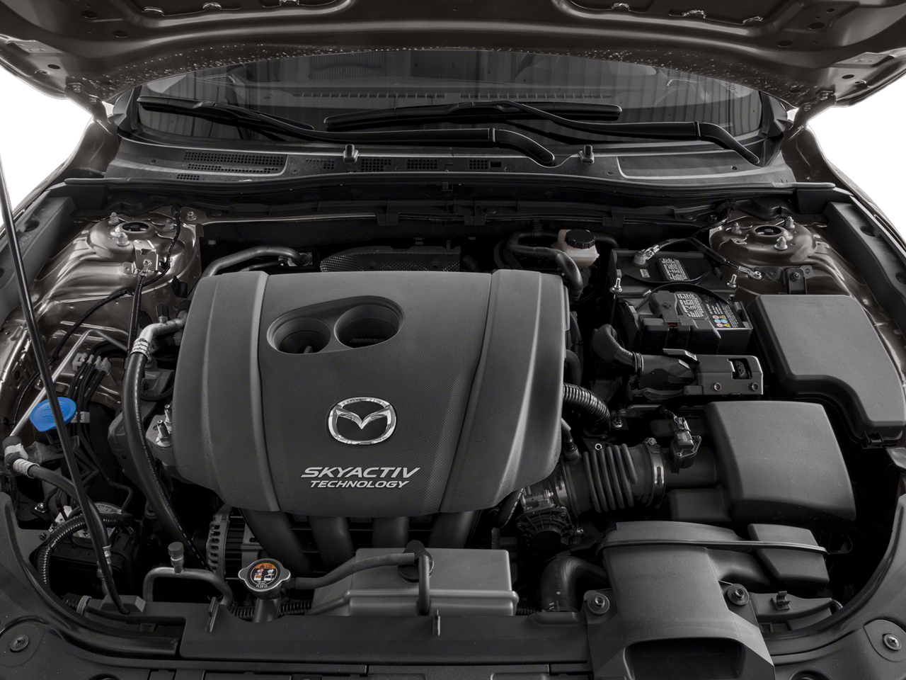 16 x 6.5J Alloy Wheels, 4-Wheel Disc Brakes, 6 Speakers, ABS brakes, Air Conditioning, Alloy wheels, AM/FM radio, Brake assist, Bumpers: body-color, Driver door bin, Driver vanity mirror, Dual front impact airbags, Dual front side impact airbags, Electronic Stability Control, Emergency communication system: Mazda Connect, Exterior Parking Camera Rear, Four wheel independent suspension, Front anti-roll bar, Front Bucket Seats, Front Center Armrest, Front fog lights, Front reading lights, Fully automatic headlights, Heated door mirrors, Illuminated entry, Leather Shift Knob, Low tire pressure warning, Occupant sensing airbag, Outside temperature display, Overhead airbag, Overhead console, Panic alarm, Passenger door bin, Passenger vanity mirror, Power door mirrors, Power moonroof, Power steering, Power windows, Premium Cloth Seat Trim, Radio data system, Radio: AM/FM/CD/HD w/Single CD, Radio: AM/FM/HD Audio System, Rain sensing wipers, Rear anti-roll bar, Rear seat center armrest, Rear window defroster, Reclining Front Bucket Seats, Remote keyless entry, Speed control, Speed-sensing steering, Split folding rear seat, Spoiler, Steering wheel mounted audio controls, Tachometer, Telescoping steering wheel, Tilt steering wheel, Traction control, Trip computer, Turn signal indicator mirrors, and Variably intermittent wipers.