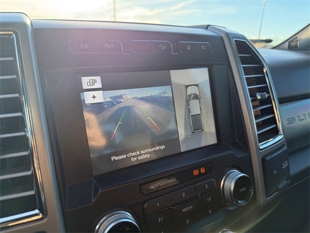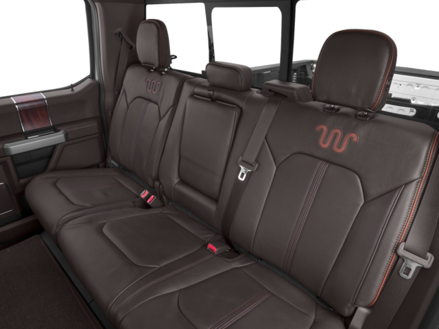GVWR: 10,000 lb Payload Package, King Ranch Ultimate Package (BLIS Blind Spot Information System, Power-Deployable Running Boards, Quad Beam LED Headlamps & LED Taillamps, Tailgate Step & Handle, and Twin Panel Power Moonroof), Order Code 700A, Tow Technology Bundle (Adaptive Steering, Rear CHMSL Camera, and Ultimate Trailer Tow Camera System), 4WD, 10 Speakers, 110V/400W Outlet, 3.73 Axle Ratio, 4-Wheel Disc Brakes, ABS brakes, Adjustable pedals, Air Conditioning, Alloy wheels, AM/FM radio: SiriusXM, Auto High-beam Headlights, Auto tilt-away steering wheel, Auto-dimming Rear-View mirror, Automatic temperature control, Brake assist, CD player, Compass, Delay-off headlights, Driver door bin, Driver vanity mirror, Dual front impact airbags, Dual front side impact airbags, Electronic Stability Control, Emergency communication system: SYNC 3 911 Assist, Exterior Parking Camera Rear, Flow-Through Console, Front anti-roll bar, Front Bucket Seats, Front Center Armrest, Front dual zone A/C, Front fog lights, Front reading lights, Fully automatic headlights, Garage door transmitter, Heated door mirrors, Heated front seats, Heated steering wheel, Illuminated entry, Illuminated running boards, Leather steering wheel, Low tire pressure warning, Memory seat, Navigation System, Outside temperature display, Overhead airbag, Overhead console, Panic alarm, Passenger door bin, Passenger vanity mirror, Pedal memory, Power door mirrors, Power driver seat, Power passenger seat, Power steering, Power windows, Radio data system, Radio: Premium Sony Audio w/Single-CD/MP3 Player, Rain sensing wipers, Rear Parking Sensors, Rear reading lights, Rear seat center armrest, Rear step bumper, Rear window defroster, Remote keyless entry, Security system, SiriusXM Radio, Speed control, Split folding rear seat, Steering wheel memory, Steering wheel mounted A/C controls, Steering wheel mounted audio controls, SYNC 3 Communications & Entertainment System, Tachometer, Telescoping steering wheel, Tilt steering wheel, Traction control, Trip computer, Turn signal indicator mirrors, Unique King Ranch Leather 40/Console/40 Front Seats, Upfitter Switches (6), Variably intermittent wipers, Ventilated front seats, Wheels: 18 Bright Machined Cast Aluminum, and Wheels: 20 Bright Machined Cast Aluminum.