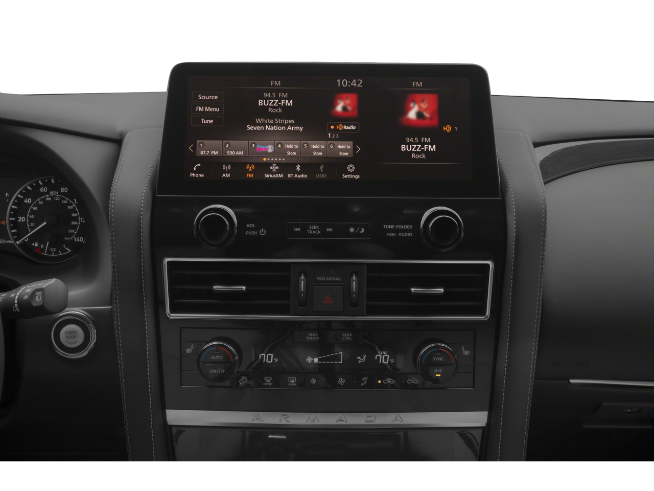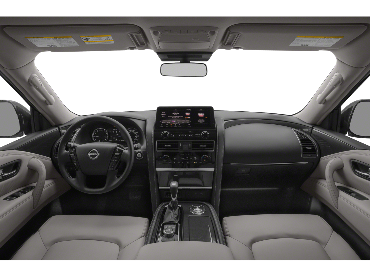 Cargo Package, SV Appearance Package (20 Aluminum Alloy Wheels, 20 Wheels, Auto-Dimming Interior Rear-View Mirror, Front Fog Lights, and Power Lift Gate), 18 Alloy Wheels, 2.94 Axle Ratio, 3rd Row Carpeted Floor Mats - Bench Seat, 3rd row seats: split-bench, 4-Wheel Disc Brakes, 6 Speakers, ABS brakes, Air Conditioning, Alloy wheels, AM/FM radio: SiriusXM, Anti-whiplash front head restraints, Auto High-beam Headlights, Auto tilt-away steering wheel, Auto-leveling suspension, Automatic temperature control, Brake assist, Bumpers: body-color, Delay-off headlights, Driver door bin, Driver vanity mirror, Dual front impact airbags, Dual front side impact airbags, Electronic Stability Control, Emergency communication system: NissanConnect Services, Four wheel independent suspension, Front anti-roll bar, Front Bucket Seats, Front Center Armrest, Front dual zone A/C, Front reading lights, Fully automatic headlights, Heated door mirrors, Heated Front Bucket Seats, Heated front seats, Illuminated entry, Leather Shift Knob, Leatherette Seat Trim, Low tire pressure warning, Navigation System, NissanConnect featuring Apple CarPlay and Android Auto, Occupant sensing airbag, Outside temperature display, Overhead airbag, Overhead console, Panic alarm, Passenger door bin, Passenger vanity mirror, Power door mirrors, Power driver seat, Power passenger seat, Power steering, Power windows, Radio: NissanConnect w/SiriusXM, Rear air conditioning, Rear anti-roll bar, Rear reading lights, Rear seat center armrest, Rear window defroster, Rear window wiper, Reclining 3rd row seat, Remote keyless entry, Security system, Special Paint - Aspen White, Speed control, Speed-sensing steering, Speed-Sensitive Wipers, Split folding rear seat, Spoiler, Steering wheel mounted audio controls, Tachometer, Telescoping steering wheel, Tilt steering wheel, Traction control, Trip computer, Turn signal indicator mirrors, Variably intermittent wipers, and Voltmeter.
