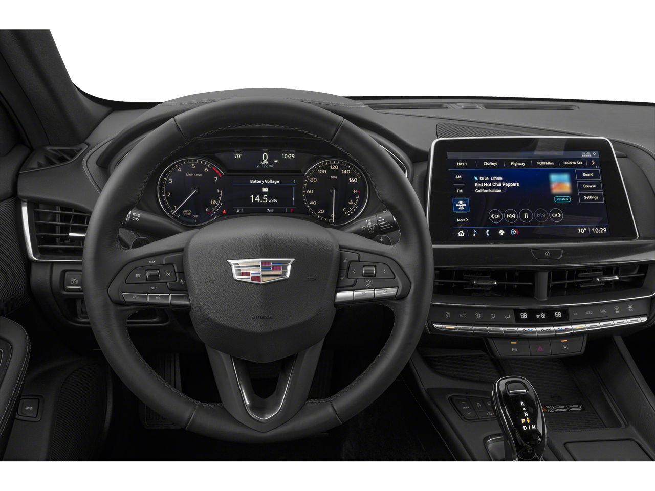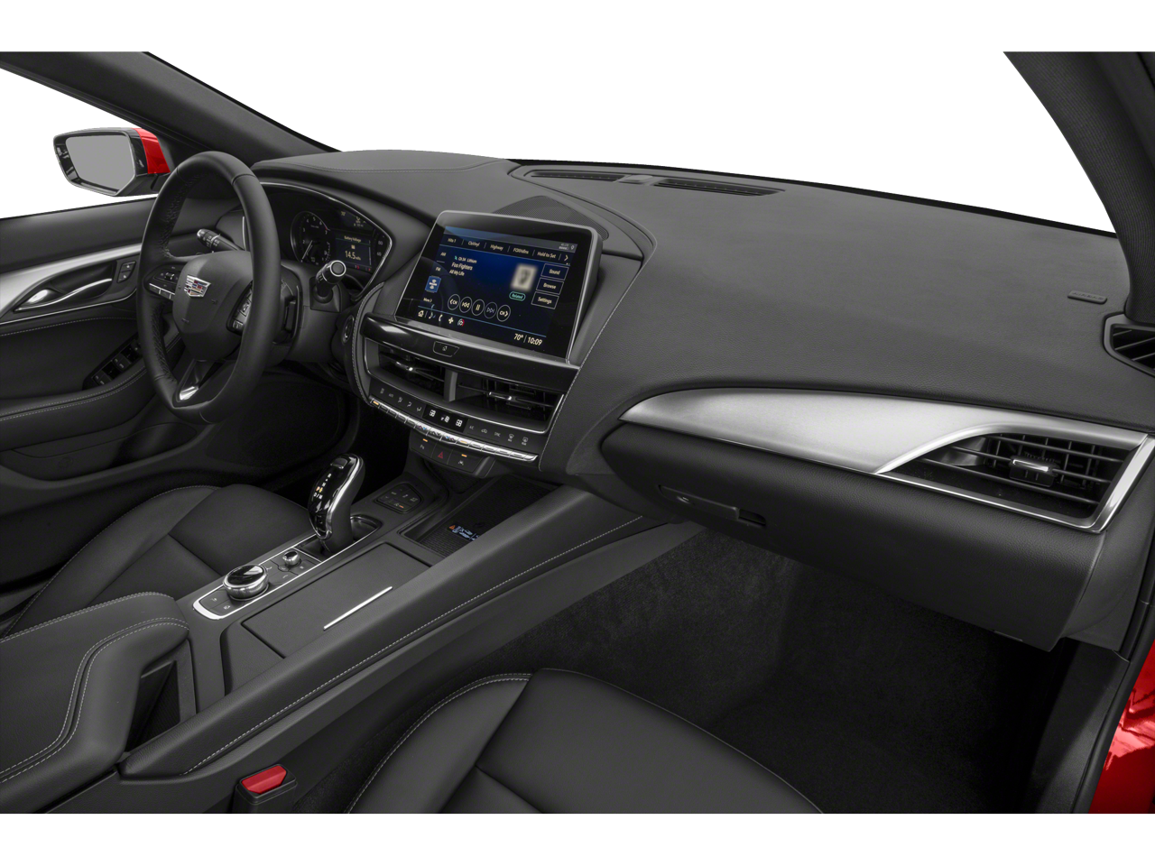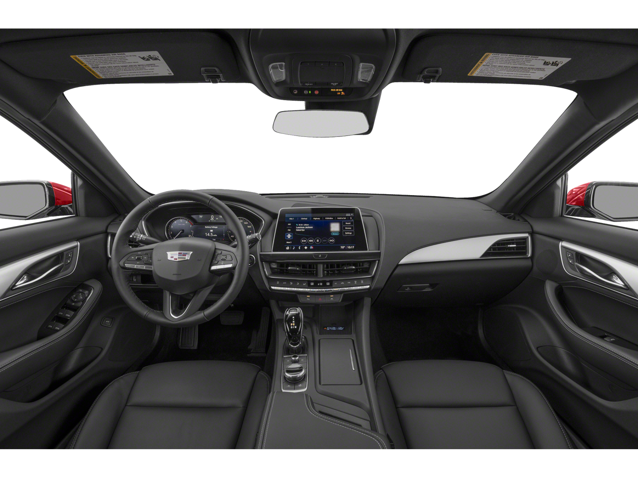 Climate Package (Driver 4-Way Power Lumbar Seat Adjuster, Front Passenger 4-Way Power Lumbar Seat Adjuster, Heated Driver & Front Passenger Seats, Heated Steering Wheel, and Ventilated Driver & Front Passenger Seats), Preferred Equipment Group 1SD (Body-Color Heated Pwr-Adjustable Outside Mirrors, Dual Diagonal Color Driver Information Center, Front & Rear Park Assist, HD Rear Vision Camera, Inside Rear-View Auto-Dimming Mirror, Lane Keep Assist w/Lane Departure Warning, LED Reflective Windshield Alert, and Steering Wheel Mounted Paddle Shift Controls), 3 USB Ports, 4-Wheel Disc Brakes, 9 Speakers, ABS brakes, Air Conditioning, Alloy wheels, AM/FM radio: SiriusXM with 360L, Apple CarPlay/Android Auto, Auto High-beam Headlights, Auto-dimming door mirrors, Auto-dimming Rear-View mirror, Automatic Stop/Start w/Disable, Automatic temperature control, Brake assist, Bumpers: body-color, Compass, Delay-off headlights, Driver door bin, Driver vanity mirror, Dual front impact airbags, Dual front side impact airbags, Electronic Stability Control, Emergency communication system: OnStar and Cadillac connected services capable, Exterior Parking Camera Rear, Four wheel independent suspension, Front anti-roll bar, Front Bucket Seats, Front Center Armrest, Front dual zone A/C, Front License Plate Bracket, Front Passenger 8-Way Power Seat Adjuster, Front reading lights, Fully automatic headlights, Garage door transmitter, HD Radio, Heated door mirrors, Illuminated entry, Knee airbag, Leather Seating Surfaces, Leather steering wheel, Low tire pressure warning, Memory seat, Occupant sensing airbag, Outside temperature display, Overhead airbag, Overhead console, Panic alarm, Passenger door bin, Passenger vanity mirror, Power door mirrors, Power driver seat, Power passenger seat, Power steering, Power windows, Premium 9-Speaker Audio System Feature, Radio data system, Radio: Cadillac User Experience, Rain sensing wipers, Rear anti-roll bar, Rear reading lights, Rear seat center armrest, Rear window defroster, Remote keyless entry, SiriusXM w/360L, Speed control, Speed-sensing steering, Split folding rear seat, Steering wheel memory, Steering wheel mounted audio controls, Tachometer, Teen Driver, Telescoping steering wheel, Tilt steering wheel, Traction control, Trip computer, Turn signal indicator mirrors, Variably intermittent wipers, Voltmeter, and Wheels: 18 Alloy w/Manoogian Silver Finish.
