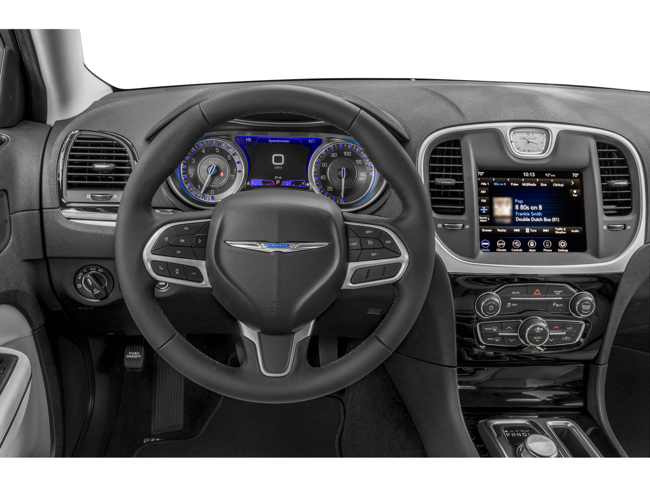 Quick Order Package 2EE, Sport Appearance Package (Black Chrome Surround 300S Grille, Black Headlamp Bezels, Black LED Taillamps, Black Noise 300 Badge, Black Noise Wing Badges - Black Insert, Gloss Black Day Light Opening Surround Molding, Gloss Black Front Fascia Applique, and Wheels: 20 x 8.0 Black Noise Aluminum), 4-Wheel Disc Brakes, 6 Speakers, ABS brakes, Air Conditioning, Alloy wheels, AM/FM radio: SiriusXM, Anti-whiplash front head restraints, Apple CarPlay/Android Auto, Auto-dimming Rear-View mirror, Automatic temperature control, Brake assist, Bumpers: body-color, Cloth Bucket Seats, Compass, Delay-off headlights, Driver door bin, Driver vanity mirror, Dual front impact airbags, Dual front side impact airbags, Electronic Stability Control, Emergency communication system: SiriusXM Guardian, Four wheel independent suspension, Front anti-roll bar, Front Bucket Seats, Front Center Armrest, Front dual zone A/C, Front License Plate Bracket, Front reading lights, Fully automatic headlights, Heated door mirrors, Illuminated entry, Knee airbag, Leather steering wheel, Low tire pressure warning, Occupant sensing airbag, Outside temperature display, Overhead airbag, Overhead console, Panic alarm, ParkView Rear Back-Up Camera, Passenger door bin, Passenger vanity mirror, Power door mirrors, Power driver seat, Power steering, Power windows, Radio data system, Radio: Uconnect 4C w/8.4 Display, Rear anti-roll bar, Rear reading lights, Rear seat center armrest, Rear window defroster, Remote keyless entry, Security system, Speed control, Speed-sensing steering, Split folding rear seat, Steering wheel mounted audio controls, Tachometer, Telescoping steering wheel, Tilt steering wheel, Traction control, Trip computer, Variably intermittent wipers, and Wheels: 17 x 7.0 Painted Cast Aluminum.