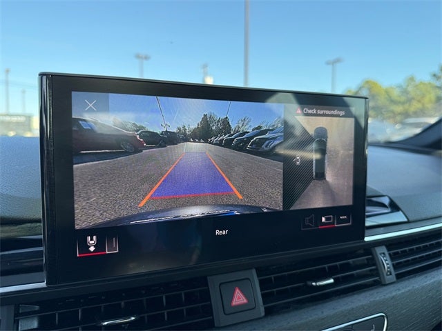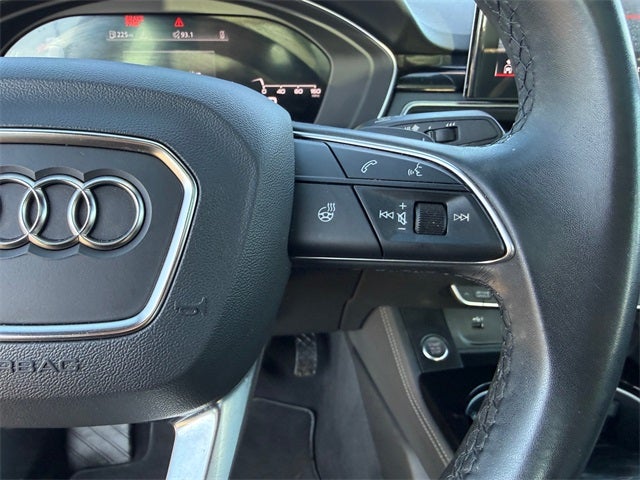 10 Speakers, 4-Wheel Disc Brakes, ABS brakes, Air Conditioning, Alloy wheels, AM/FM radio, Anti-whiplash front head restraints, Auto High-beam Headlights, Auto-dimming Rear-View mirror, Automatic temperature control, Brake assist, Bumpers: body-color, Compass, Delay-off headlights, Driver door bin, Driver vanity mirror, Dual front impact airbags, Dual front side impact airbags, Electronic Stability Control, Emergency communication system: Audi connect CARE, Exterior Parking Camera Rear, Four wheel independent suspension, Front anti-roll bar, Front Bucket Seats, Front Center Armrest, Front dual zone A/C, Front fog lights, Front reading lights, Garage door transmitter: HomeLink, Genuine wood console insert, Genuine wood dashboard insert, Genuine wood door panel insert, Heated door mirrors, Heated front seats, Heated Front Sport Seats, Heated steering wheel, Illuminated entry, Knee airbag, Leather Seating Surfaces, Leather Shift Knob, Leather steering wheel, Low tire pressure warning, Occupant sensing airbag, Outside temperature display, Overhead airbag, Overhead console, Panic alarm, Passenger door bin, Passenger vanity mirror, Power adjustable front head restraints, Power door mirrors, Power driver seat, Power Liftgate, Power moonroof, Power passenger seat, Power steering, Power windows, Radio data system, Radio: Audi Sound System, Rain sensing wipers, Rear air conditioning, Rear anti-roll bar, Rear reading lights, Rear seat center armrest, Rear window defroster, Remote keyless entry, Speed control, Speed-sensing steering, Speed-Sensitive Wipers, Split folding rear seat, Steering wheel mounted audio controls, Tachometer, Telescoping steering wheel, Tilt steering wheel, Traction control, Trip computer, Turn signal indicator mirrors, Variably intermittent wipers, and Wheels: 18 5-Double-Spoke Design.