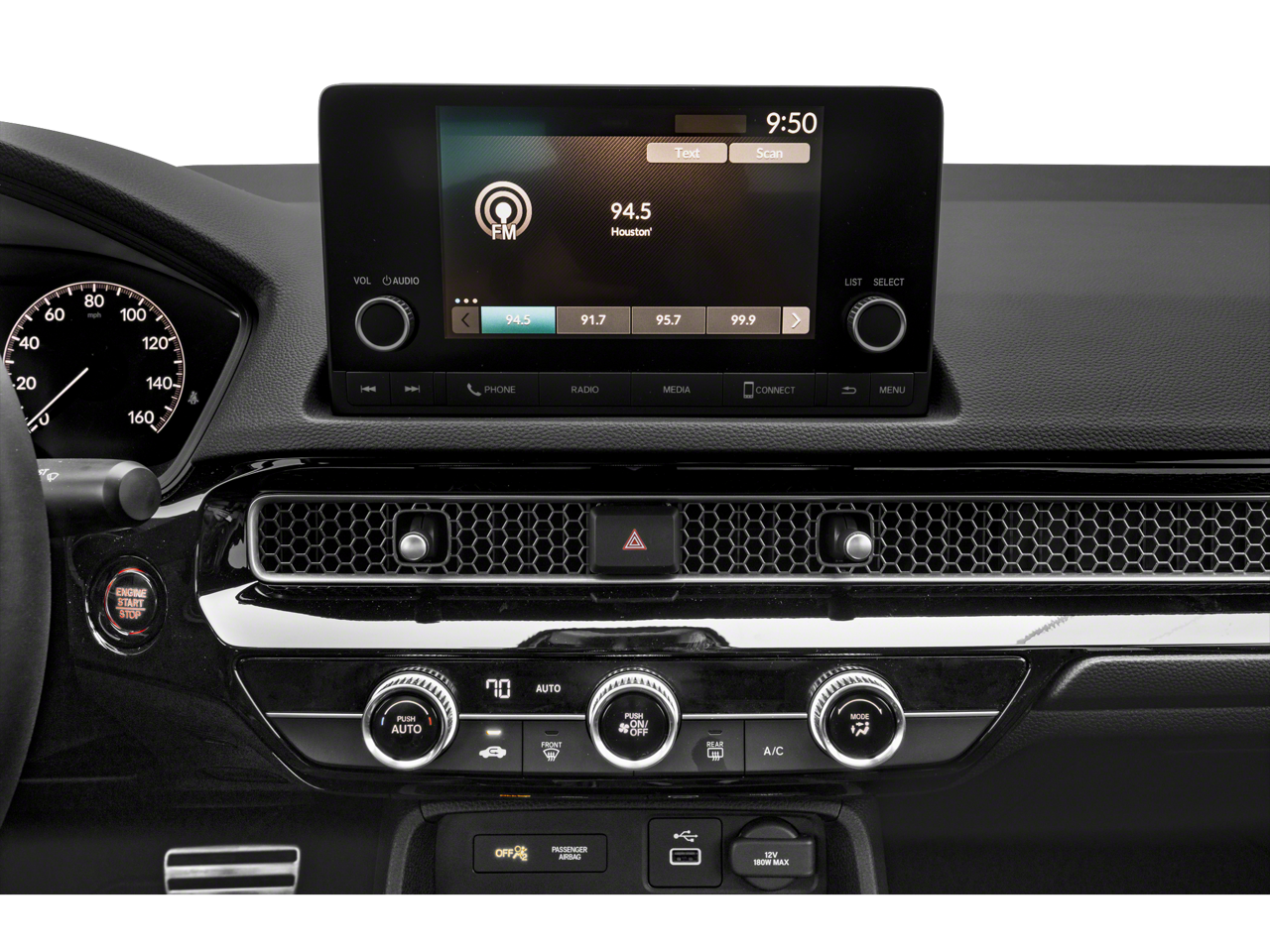 4-Wheel Disc Brakes, 8 Speakers, ABS brakes, Adaptive Cruise Control: Adaptive Cruise Control (ACC) with Low-Speed Follow, Air Conditioning, Alloy wheels, AM/FM radio, Apple CarPlay/Android Auto, Auto High-beam Headlights, Automatic temperature control, Brake assist, Bumpers: body-color, Cloth/Leatherette Seating Surfaces, Delay-off headlights, Driver door bin, Driver vanity mirror, Dual front impact airbags, Dual front side impact airbags, Electronic Stability Control, Emergency communication system: HondaLink, Exterior Parking Camera Rear, Four wheel independent suspension, Front anti-roll bar, Front Bucket Seats, Front Center Armrest, Front reading lights, Fully automatic headlights, Illuminated entry, Knee airbag, Leather Shift Knob, Leather steering wheel, Low tire pressure warning, Occupant sensing airbag, Outside temperature display, Overhead airbag, Panic alarm, Passenger door bin, Passenger vanity mirror, Power door mirrors, Power steering, Power windows, Radio data system, Radio: 180-Watt Audio System, Rear anti-roll bar, Rear side impact airbag, Rear window defroster, Remote keyless entry, Security system, Speed control, Speed-sensing steering, Steering wheel mounted audio controls, Tachometer, Telescoping steering wheel, Tilt steering wheel, Traction control, Trip computer, and Wheels: 18 Gloss Black Alloy.
