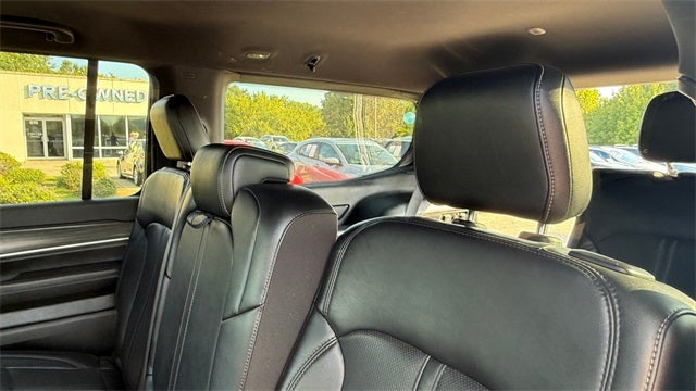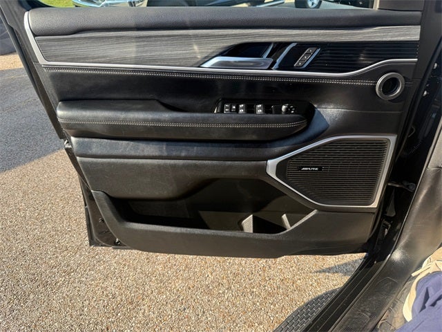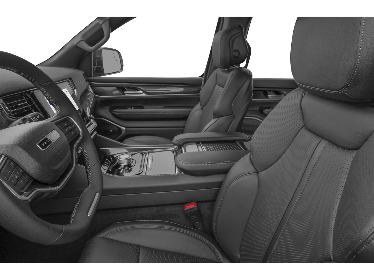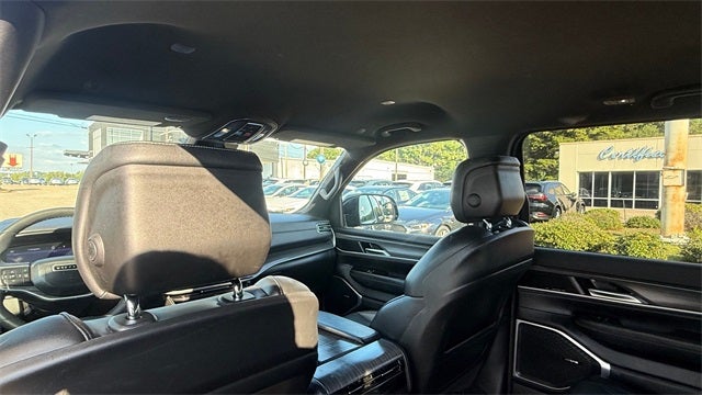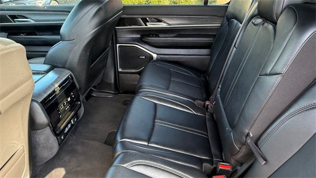Preferred Equipment Group (DISC) (60/40 Power Recline 3rd Row Seat, Heads-Up Display, Quadra-Lift Air Suspension, and Semi Active Damping), Quick Order Package 25N, 10 Speakers, 3.55 Rear Axle Ratio, 3rd row seats: bench, 4-Wheel Disc Brakes, 8-Passenger Seating, ABS brakes, Adjustable pedals, Air Conditioning, Alloy wheels, AM/FM radio: SiriusXM with 360L, Anti-whiplash front head restraints, Apple CarPlay/Android Auto, Audio memory, Auto High-beam Headlights, Auto-dimming door mirrors, Auto-dimming Rear-View mirror, Auto-leveling suspension, Automatic temperature control, Brake assist, Bumpers: body-color, Compass, Delay-off headlights, Driver door bin, Driver vanity mirror, Driver's Seat Mounted Armrest, Dual front impact airbags, Dual front side impact airbags, Electronic Stability Control, Emergency communication system: Wagoneer Connect, Exterior Parking Camera Rear, Four wheel independent suspension, Front anti-roll bar, Front Bucket Seats, Front Center Armrest w/Storage, Front dual zone A/C, Front fog lights, Front reading lights, Fully automatic headlights, Garage door transmitter, Genuine wood console insert, Genuine wood dashboard insert, Genuine wood door panel insert, Heated door mirrors, Heated front seats, Heated rear seats, Heated steering wheel, Illuminated entry, Knee airbag, Leather Trimmed Bucket Seats, Low tire pressure warning, Memory seat, Navigation System, Normal Duty Suspension, Occupant sensing airbag, Outside temperature display, Overhead airbag, Overhead console, Panic alarm, Passenger door bin, Passenger seat mounted armrest, Passenger vanity mirror, Pedal memory, Power adjustable front head restraints, Power door mirrors, Power driver seat, Power Liftgate, Power passenger seat, Power steering, Power windows, Radio data system, Radio: Uconnect 5 Nav w/10.1 Display, Rain sensing wipers, Rear air conditioning, Rear anti-roll bar, Rear dual zone A/C, Rear reading lights, Rear seat center armrest, Rear window defroster, Rear window wiper, Reclining 3rd row seat, Remote keyless entry, Security system, Speed control, Speed-sensing steering, Speed-Sensitive Wipers, Split folding rear seat, Steering wheel memory, Steering wheel mounted audio controls, Tachometer, Telescoping steering wheel, Tilt steering wheel, Traction control, Trip computer, Turn signal indicator mirrors, Variably intermittent wipers, Ventilated front seats, Voltmeter, and Wheels: 20 x 9.0 Aluminum (DISC)