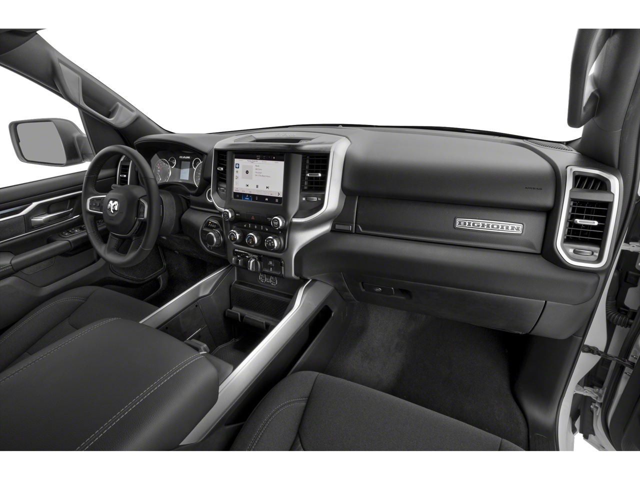 Big Horn Level B Equipment Group (115V Auxiliary Power Outlet, 2nd Row In Floor Storage Bins, 400W Inverter, 4G LTE Wi-Fi Hot Spot, 9 Amplified Speakers w/Subwoofer, Air Conditioning ATC w/Dual Zone Control, All R1 High Radios, All Radio Equipped Vehicles, Apple CarPlay, Auto-Dimming Exterior Driver Mirror, Auto-Dimming Rear-View Mirror, Black Premium Power Mirrors, Class IV Receiver Hitch, Cluster 7.0 TFT Color Display, Connected Travel & Traffic Services, Connectivity - US/Canada, Convex Wide-Angle Exterior Mirror Insert, Exterior Mirrors Courtesy Lamps, Exterior Mirrors w/Heating Element, Exterior Mirrors w/Supplemental Signals, For Details, Visit DriveUconnect.com, For More Info, Call 800-643-2112, Front Fog Lamps, Global Telematics Box Module (TBM), Glove Box Lamp, Google Android Auto, GPS Navigation, HD Radio, Heated Front Seats, Heated Steering Wheel, Integrated Voice Command w/Bluetooth®, LED Footwell Lighting, Media Hub w/2 Charge Only USBs, ParkSense Front/Rear Park Assist w/Stop, Power 2-Way Driver Lumbar Adjust, Power 8-Way Driver Seat, Power Adjustable Pedals, Power-Folding Mirrors, Radio: Uconnect 5 Nav w/12.0 Display, Rear Dome w/On/Off Switch Lamp, Rear Power Sliding Window, Rear Window Defroster, Remote Start System, Security Alarm, SiriusXM Radio Service, SiriusXM Satellite Radio, SiriusXM w/360L, Sun Visors w/Illuminated Vanity Mirrors, Universal Garage Door Opener, and USB Host Flip), Night Edition (3 Rear Seat Head Restraints, 4 Way Front Headrests, Accent Color Door Handles, Accent Color Premium Power Mirrors, Anti-Spin Differential Rear Axle, Black Exterior Truck Badging, Black Headlamp Bezels, Black Interior Accents, Black Painted Exterior Mirrors Caps, Body Color Front Bumper, Body Color Rear Bumper w/Step Pads, Bucket Seats, Deluxe Cloth Bucket Seats, Dual Exhaust w/Black Tips, Front Seat Back Map Pockets, Full Length Floor Console, Grille Surround 1 Black Texture 2 Black, Manual Adjust 4-Way Front Passenger Seat, RAM Grille Badge - Black, Rear 60/40 Folding Seat, Rear Center Armrest, and Wheels: 20 x 9.0 Premium Paint/Polished), Quick Order Package 27R Lone Star (Regional) (Lone Star Badge), 3.21 Rear Axle Ratio, 4-Wheel Disc Brakes, 48V Belt Starter Generator, 6 Speakers, ABS brakes, Air Conditioning, Alloy wheels, AM/FM radio, Brake assist, Bumpers: chrome, Cloth Bench Seat, Compass, Delay-off headlights, Driver door bin, Dual front impact airbags, Dual front side impact airbags, Electronic Stability Control, Emergency communication system: RAM Connect, Front anti-roll bar, Front Center Armrest w/Storage, Front License Plate Bracket, Front reading lights, Front wheel independent suspension, Fully automatic headlights, Heated door mirrors, Illuminated entry, Leather steering wheel, Low tire pressure warning, Occupant sensing airbag, Outside temperature display, Overhead airbag, Overhead console, Panic alarm, ParkView Rear Back-Up Camera, Passenger door bin, Passenger vanity mirror, Power door mirrors, Power steering, Power windows, Radio data system, Radio: Uconnect 3 w/5 Display, RAM Grille Badge - Chrome, Rear anti-roll bar, Rear seat center armrest, Rear step bumper, Remote keyless entry, Speed control, Split folding rear seat, Steering wheel mounted audio controls, Tachometer, Telescoping steering wheel, Tilt steering wheel, Traction control, Trailer Brake Control, Trip computer, Variably intermittent wipers, Voltmeter, and Wheels: 18 x 8 Cast-Aluminum PainteD.