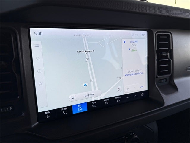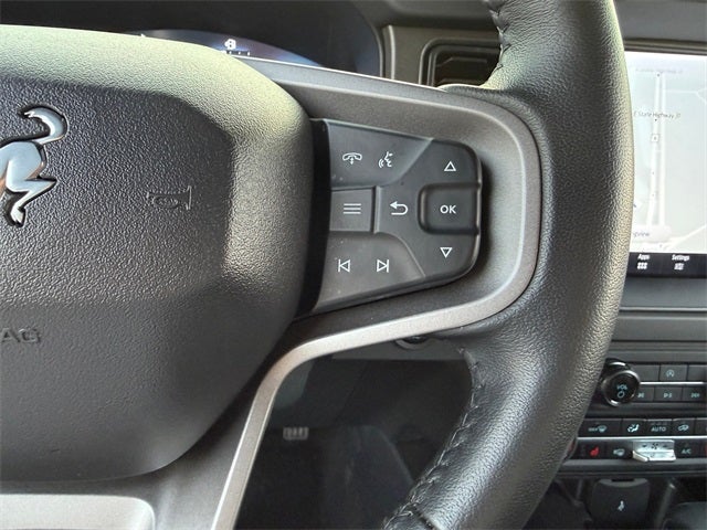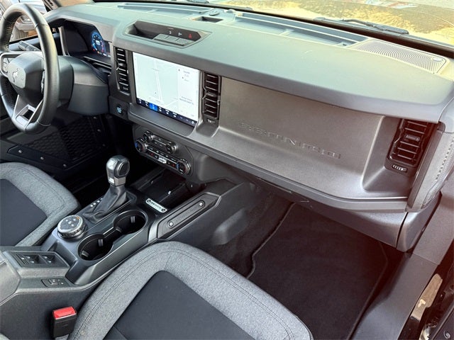 Equipment Group 222A Mid Package (2-Door Intelligent Access w/Lock/Unlock, Ambient Footwell Lighting, Connected Navigation, Dr & Pass Illuminated Sliding Visor Vanity Mirrors, Dual Smart Charging USB Ports, Dual-Zone Electronic Automatic Temperature Control, Front Row Heated Seats, Power Outlet - Back Side of Center Floor Console, and Rear Parking Sensors), 4-Wheel Disc Brakes, 4.46 Axle Ratio, 7 Speakers, ABS brakes, Air Conditioning, Alloy wheels, AM/FM radio: SiriusXM with 360L, AM/FM Stereo, Auto High-Beam Headlamps, Auto High-beam Headlights, BLIS Blind Spot Information System, Brake assist, Carbonized Gray Molded-In-Color Hard Top, Cloth Bucket Seats, Compass, Delay-off headlights, Driver door bin, Driver vanity mirror, Dual front impact airbags, Dual front side impact airbags, Electronic Stability Control, Emergency communication system: 911 Assist, Exterior Parking Camera Rear, Front anti-roll bar, Front Bucket Seats, Front Center Armrest, Front reading lights, Front wheel independent suspension, Fully automatic headlights, Heated door mirrors, Illuminated entry, Integrated roll-over protection, Internet access capable: FordPass Connect, Lane-Keeping System, Leather Shift Knob, Low tire pressure warning, Occupant sensing airbag, Outside temperature display, Overhead airbag, Overhead console, Panic alarm, Passenger door bin, Passenger vanity mirror, Power door mirrors, Power steering, Power windows, Pre-Collision Assist w/Automatic Emergency Braking, Radio data system, Rear-View Camera, Rear-Window Defroster & Washer, Remote keyless entry, Security system, SiriusXM w/360L, Speed control, Split folding rear seat, Steering wheel mounted audio controls, SYNC 4, Tachometer, Telescoping steering wheel, Tilt steering wheel, Traction control, Trip computer, Variably intermittent wipers, and Wheels: 17 Carbonized Gray-Painted Aluminum.